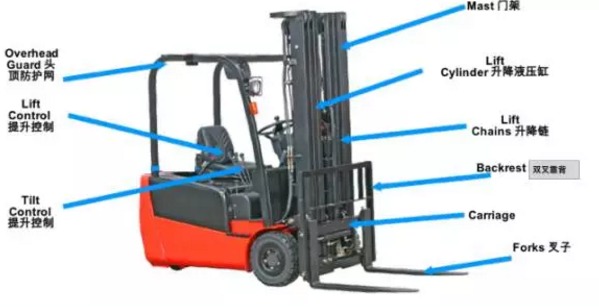 叉車出廠自帶的安全裝置有剎車、停車制動(dòng)器、各種指示燈、喇叭、倒車蜂鳴、行車閃光燈、大燈、叉齒定位銷、后視鏡、護(hù)頂架、雙叉靠背等,請(qǐng)看圖注意認(rèn)識(shí)它們。