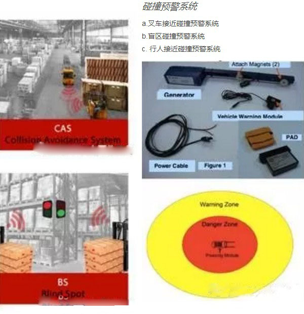 行人接近碰撞預(yù)警系統(tǒng):可以應(yīng)用在人員與叉車不能分離的區(qū)域,另外跟人與叉車的安全間距提供了工程上控制,升級(jí)防護(hù)等級(jí)。