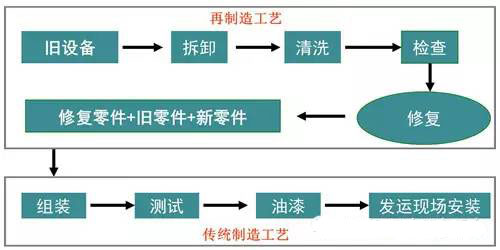與制造新品相比,再制造產(chǎn)品可節(jié)省成本50%,節(jié)能60%,節(jié)材70%,幾乎不產(chǎn)生固體廢物。所以再制造產(chǎn)業(yè)前景廣闊。