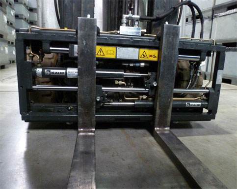 通過(guò)液壓調(diào)整貨叉間距,實(shí)現(xiàn)搬運(yùn)不同規(guī)格托盤(pán)的貨物;無(wú)須操作人員手動(dòng)調(diào)整貨叉間距。減輕了操作人員的勞動(dòng)強(qiáng)度。