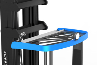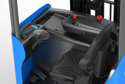 當(dāng)叉車在行駛及轉(zhuǎn)向時(shí),操作者可以倚靠在帶有內(nèi)置扶手的腰部支架上。操作更為輕松。腰部支架