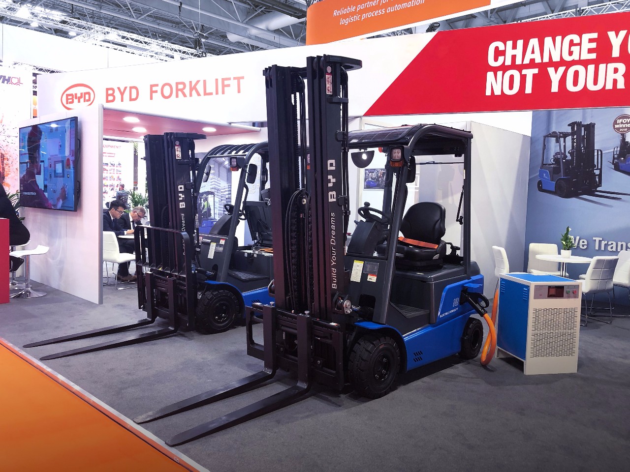 此外,同樣搭載比亞迪鋰電池技術(shù)的平衡重式叉車也在IMHX上展出。