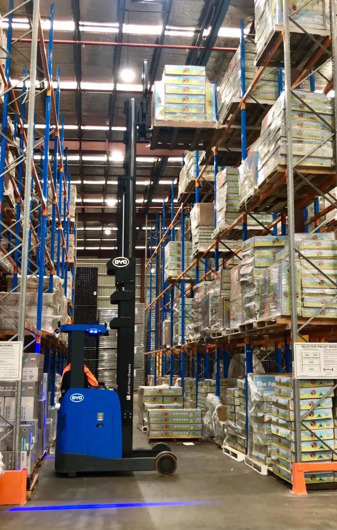 RTR16的儀表可實(shí)時(shí)顯示起升高度、轉(zhuǎn)向角度和貨物重量,配以超載保護(hù)、高位傾角保護(hù)、OPS座椅、轉(zhuǎn)彎/高位限速、駐坡保護(hù)等功能,使安全性得到大幅提升;不僅如此,為適合倉(cāng)庫(kù)作業(yè),RTR16還采用偏置式自由缸設(shè)計(jì),配置外掛式側(cè)移器和藍(lán)色鐳射燈,在空間相對(duì)狹窄的貨架間和人員密集的物流倉(cāng)庫(kù)中操作時(shí),依然保持良好視野,可輕松、靈活地完成貨物的叉取和堆放作業(yè)。這些獨(dú)具匠心的布置,確保了搬運(yùn)效率和人員貨物安全,讓澳洲物流客戶心儀的同時(shí),也依托電機(jī)驅(qū)動(dòng)零排放的優(yōu)勢(shì)技術(shù)讓比亞迪澳洲代理商斬獲未來市場(chǎng)和新訂單。