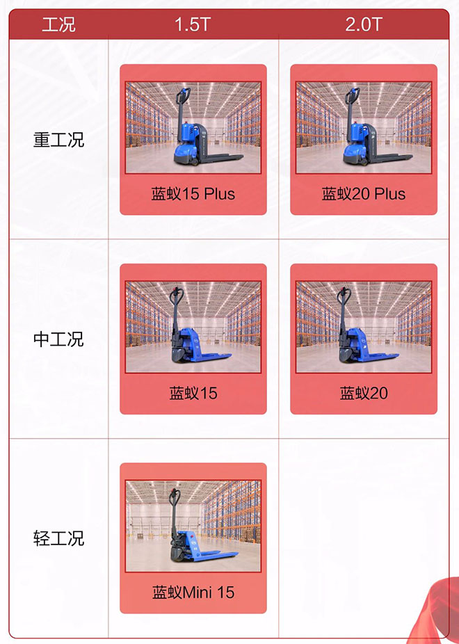 藍蟻系列產(chǎn)品涵蓋輕、中和重各種搬運工況,并精準匹配客戶使用需求。