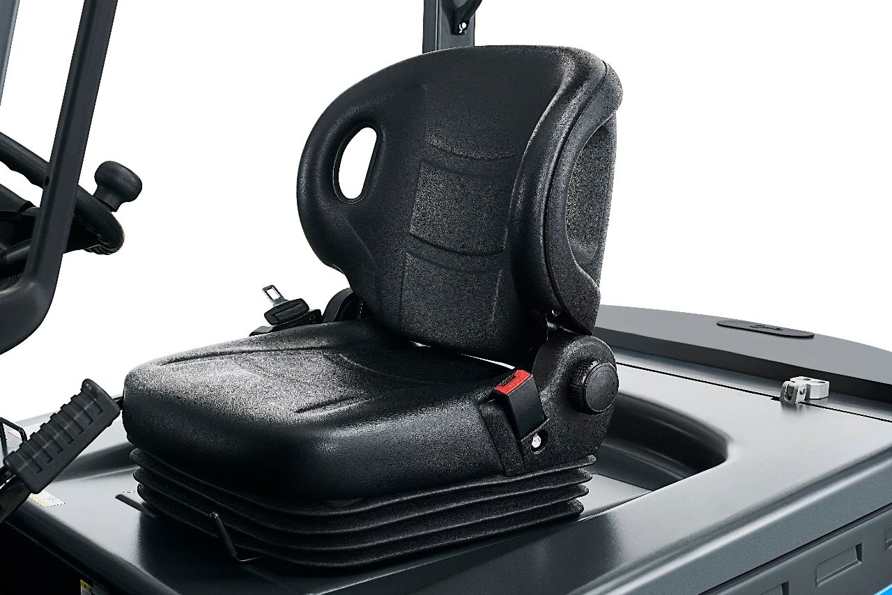 圍繞叉車安全,很多主機廠商都下足了功夫,在產(chǎn)品設(shè)計方面增加叉車的安全系數(shù)。比亞迪叉車搭載的操作者感應(yīng)系統(tǒng)(OPS)與橙色安全帶,可以自動感應(yīng)操作者是否離開了座位以及是否系上了安全帶。