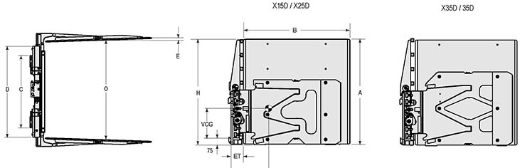 | Capacity 承載能力(kg) | Catalog Order NO 型號(hào) | Mounting Class 安裝等級(jí) | Opening Range張臂范圍(mm) | Arm Height臂高A(mm) | Arm Length臂長B(mm) | Vertcial Center Of Gravity垂直重心VCG(mm) | Load Center載荷中心(mm) | Overall Width總寬D(mm) | Hook Spread上鉤外側(cè)間距(mm) | Weight 自重(kg) | Effective 失載距ET(mm) | Horizontal Center of Gravity 水平重心CGH(mm) |