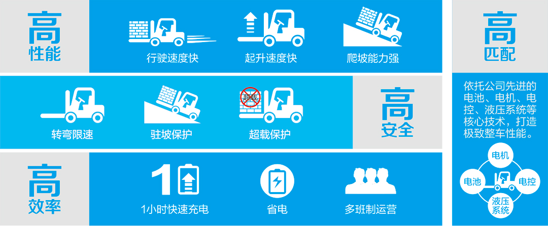 鐵電池經碰撞、擠壓、針刺、火燒、高低溫沖擊均不會起火、爆炸,徹底解決叉車電池的安全隱患問題。