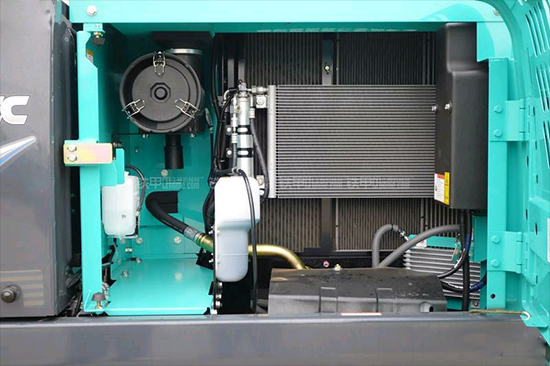 6、散熱風扇葉片變形、皮帶松弛。挖掘機發(fā)動機安裝在相對密閉的機艙內,如果散熱風扇不能將散熱器和機體散發(fā)的熱量及時排出機艙,熱量會在機艙內聚集,影響發(fā)動機散熱效率。