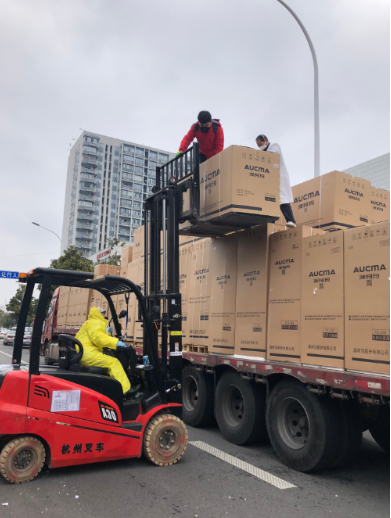 時間一分一秒過去,在醫(yī)生和志愿者們的協(xié)助下,唐福生和韓明一次次駛近貨物、垂直門架、調(diào)整叉高、進叉取貨、微提貨叉、退出貨位、調(diào)高叉高,將貨物穩(wěn)穩(wěn)地送到醫(yī)院住院樓;這些救命的物資陸續(xù)送上電梯,一件、兩件、三件……