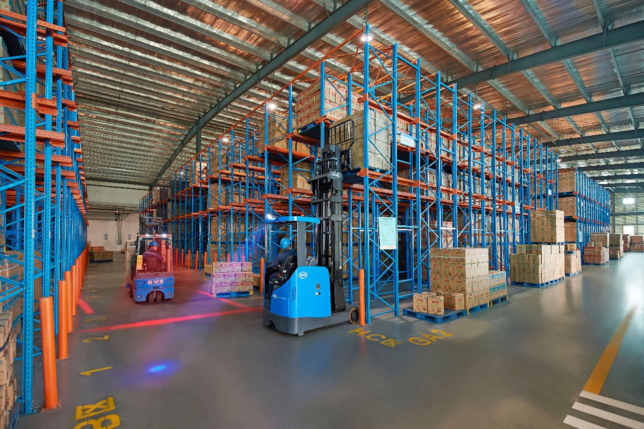 通過安裝在護頂架上的藍色鐳射燈,以藍色警示光框警示周圍人員有叉車正在運行,避免事故的發(fā)生;此外除了傳統(tǒng)的頻閃燈、蜂鳴警報器、全景后視鏡等,像倒車?yán)走_、高位攝像頭等一眾新技術(shù)也被應(yīng)用到叉車上,在提升設(shè)備自身安全性能的同時,也為作業(yè)提供了便利。