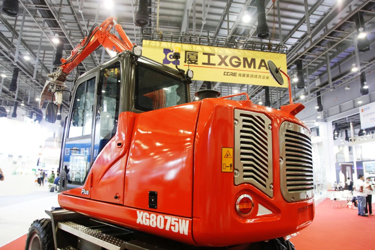 其次,即便靜靜地站在展館里,也是自帶光環(huán)、熠熠生輝的則是廈工全新的智能輪式挖掘機(jī)XG8075W。